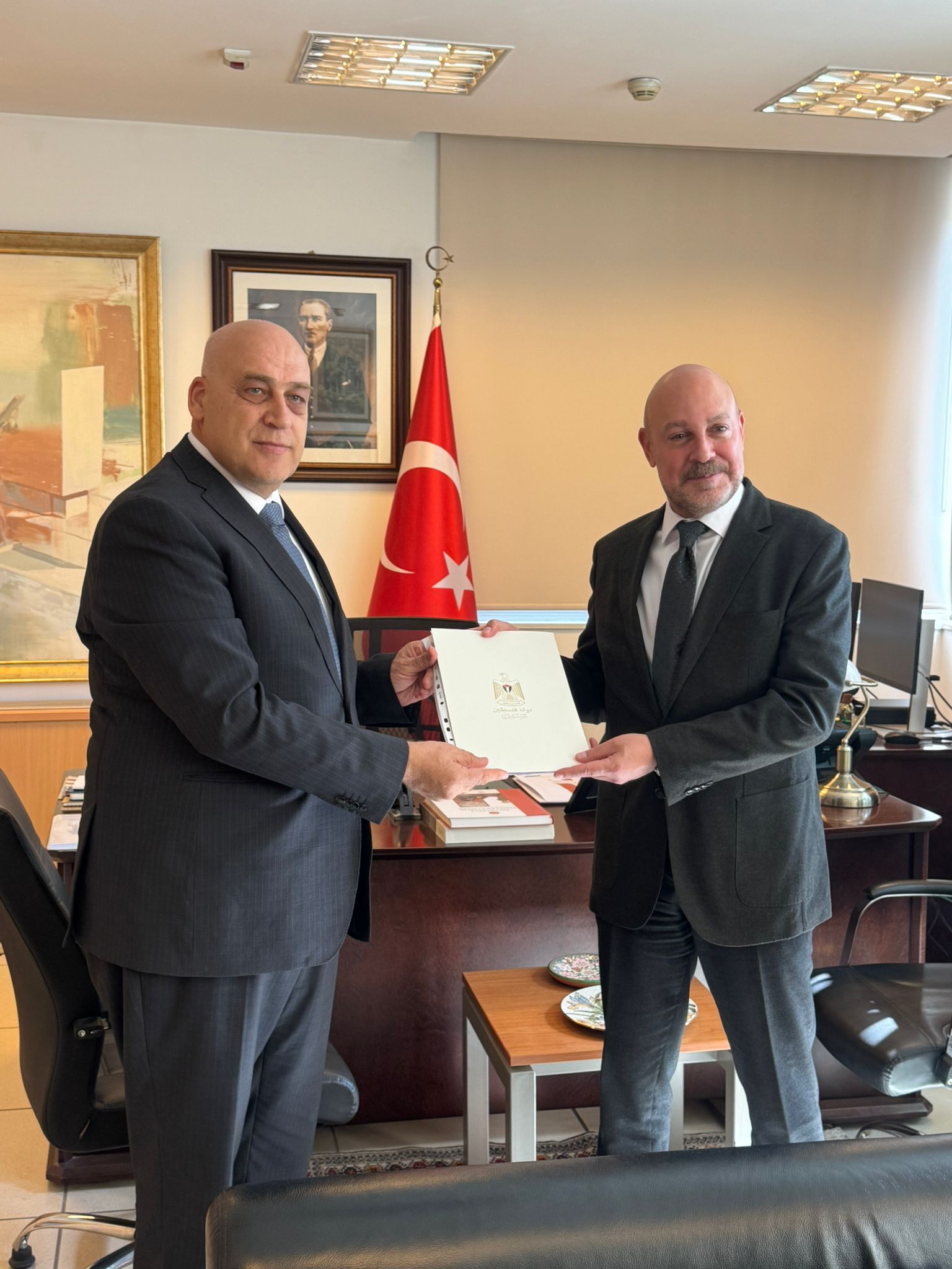 إجتمع هذا اليوم في العاصمه أنقره سفير دولة فلسطين لدى الجمهوريه التركيه د. فائد مصطفى مع ألمدير العام للطابو العثماني السيد جوكهان كانال
