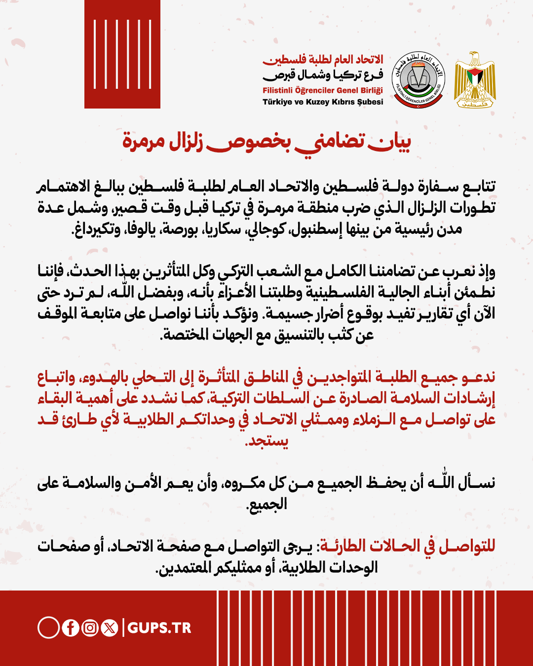 باسم سفارة دولة فلسطين لدى الجمهورية التركية وجميع العاملين فيها، يسعدني أن أرفع إليكم أطيب التحيات وأسمى عبارات التقدير، وأرحب بكم أجمل ترحيب عبر موقعنا الإلكتروني. نأمل أن يكون هذا الموقع جسر تواصل حيّ يفتح أمامكم آفاق التعرف على رسالة السفارة ودورها وأنشطتها المتنوعة، إلى جانب ما تقدمه من خدمات قنصلية مخصصة لأبنائنا الطلبة ولأبناء جاليتنا الفلسطينية الكريمة في الجمهورية التركية