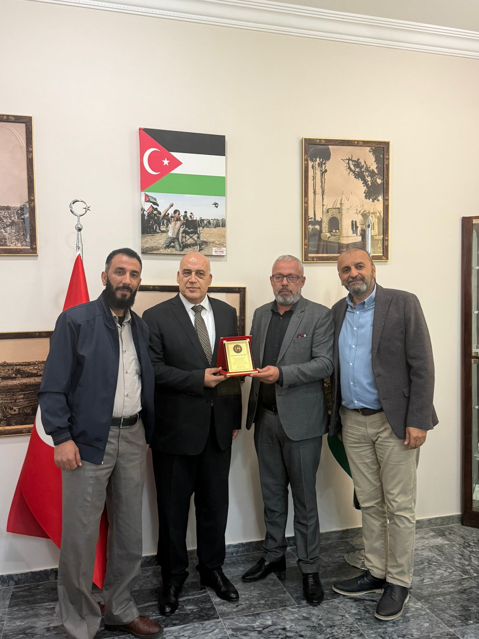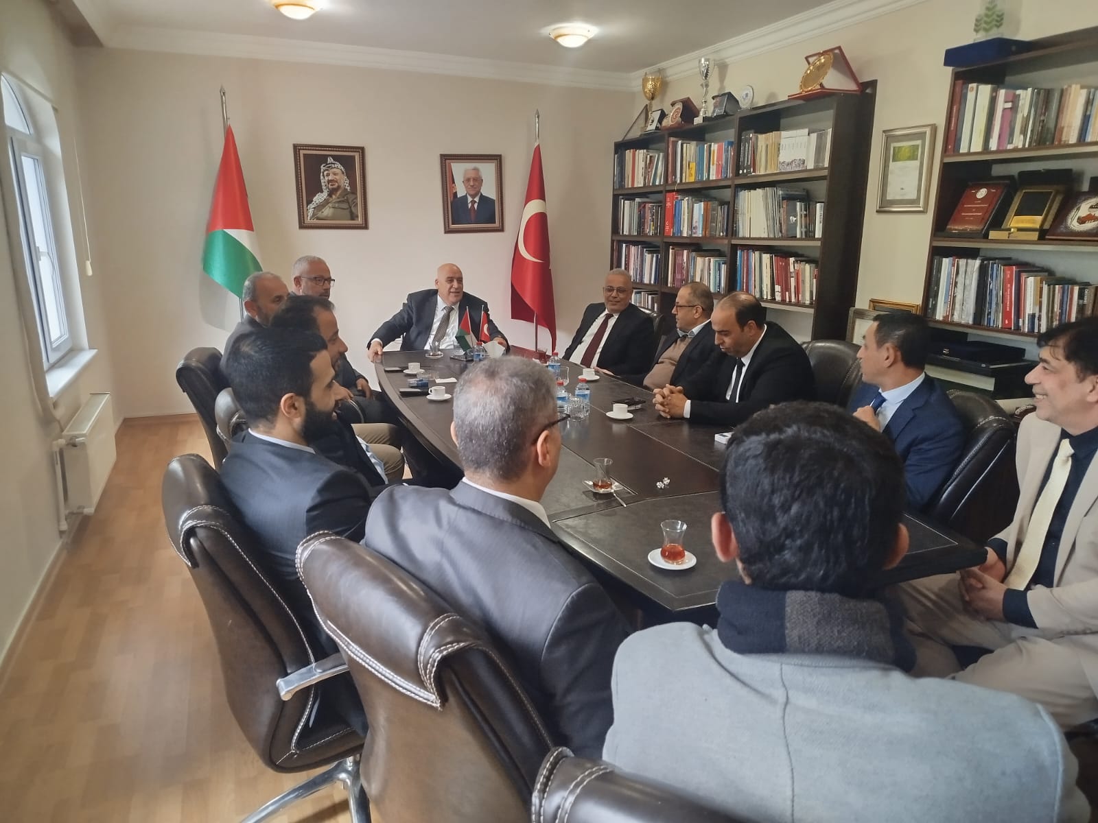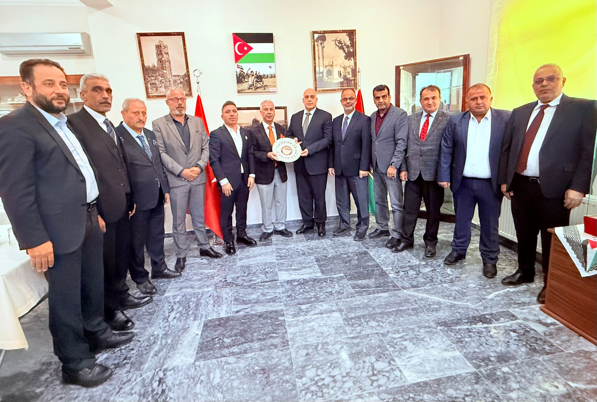 السفير الفلسطيني د. نصري أبو جيش يلتقي الاخ مراد الجيوسي علي راس وفد من رؤساء الجاليات الفلسطينية وعدداً من الشخصيات التركية في مقر السفارة