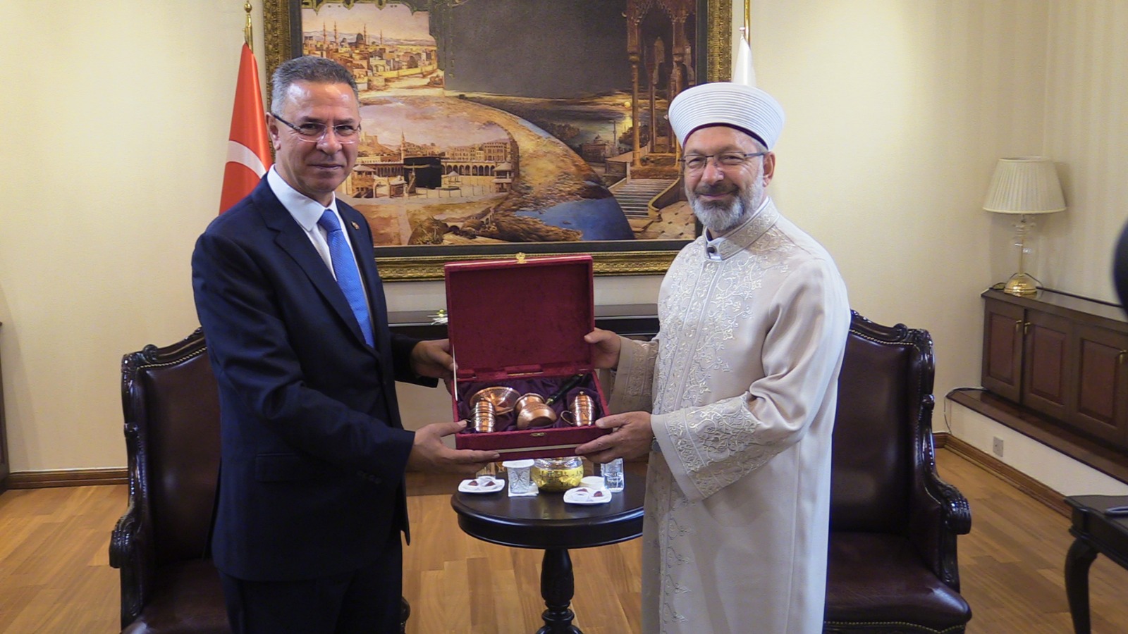زيارة سماحة الشيخ حاتم البكري وزير الأوقاف والشؤون الدينية و سعادة السفير د.فائد مصطفى الى رئيس الشؤون الدينية التركي الدكتور زار علي أرباش