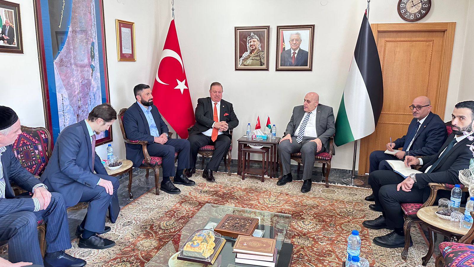 من جانبه أعرب سعادة النائب دوغان بيكين باسم وفد المنتدى الإسلامي الأوروبي عن شكره وتقديره لسعادة السفير د. ابو جيش على حفاوة الاستقبال مؤكدا استمرار المنتدى في دعم القضية الفلسطينية من خلال تنظيم الفعاليات والمؤتمرات والمسيرات في مختلف الدول الأوروبية والعمل على توعية الرأي العام الأوروبي وكشف انتهاكات الإحتلال الاسرائيلي بما يسهم في تعزيز التأييد الدولي للحقوق الفلسطينية